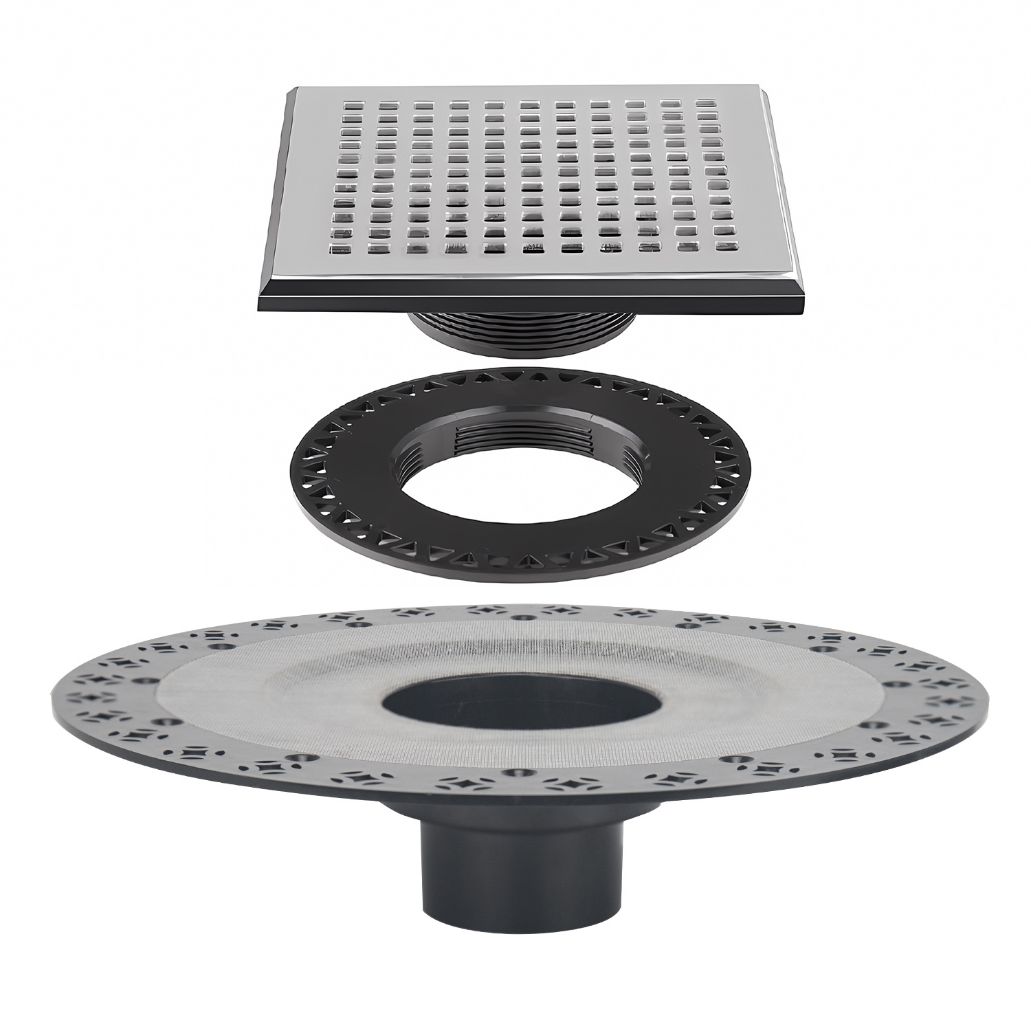Bonding Flansch-Abflusskit mit 4"-Abflussgitter und 12"-Flansch.
